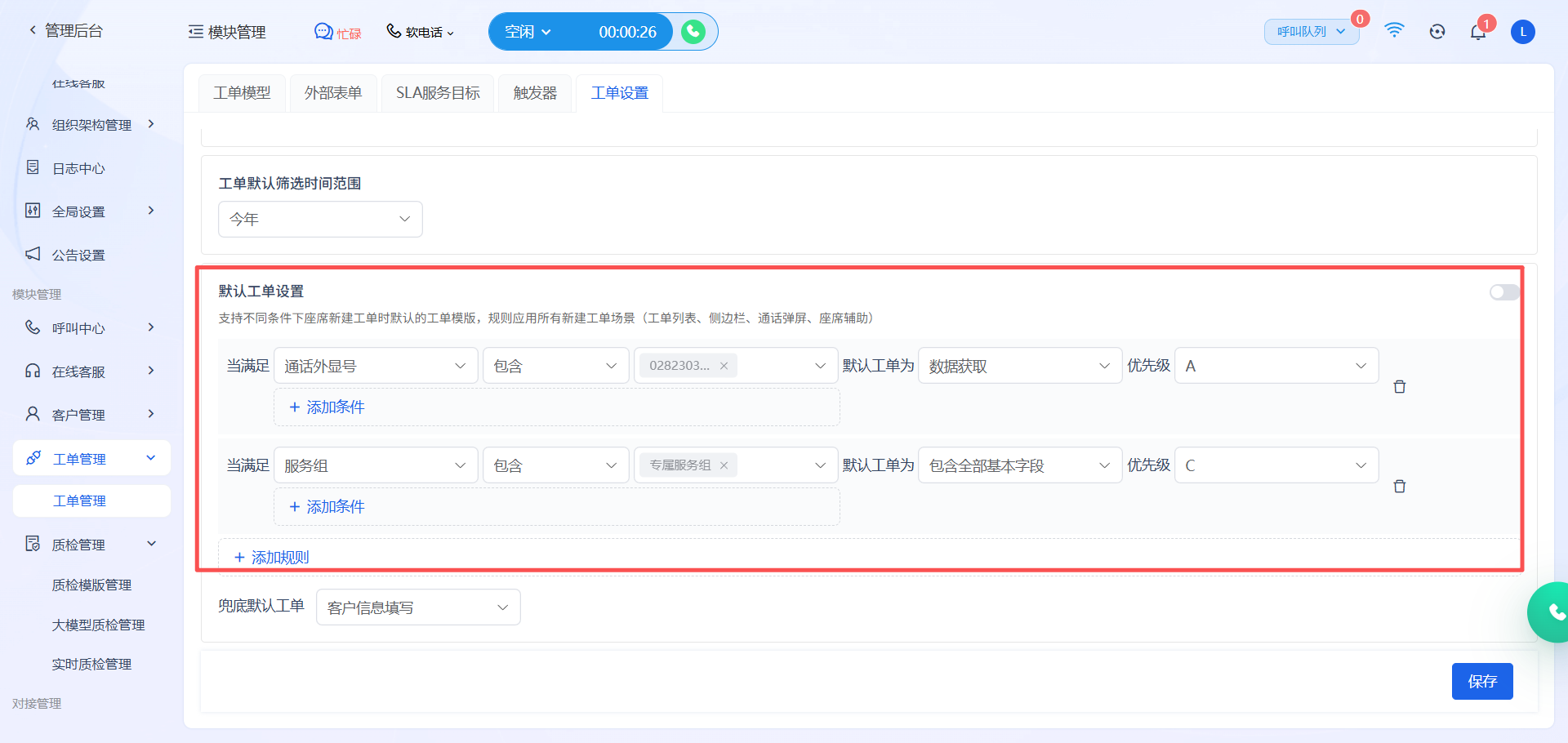【优化】默认工单设置以及默认流程设置支持不设置条件并保存