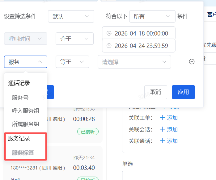 【优化】增加了通话部分筛选服务记录的字段
