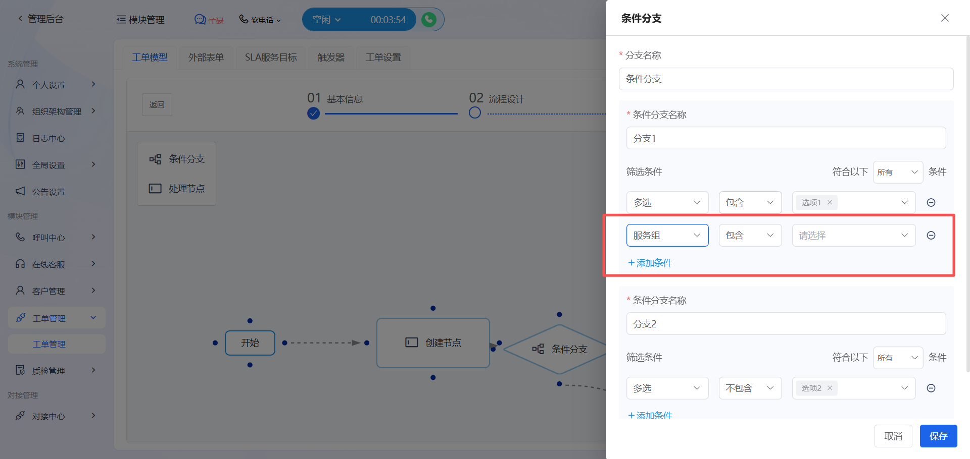 【优化】工单流程条件节点中,支持筛选“服务组”类型字段