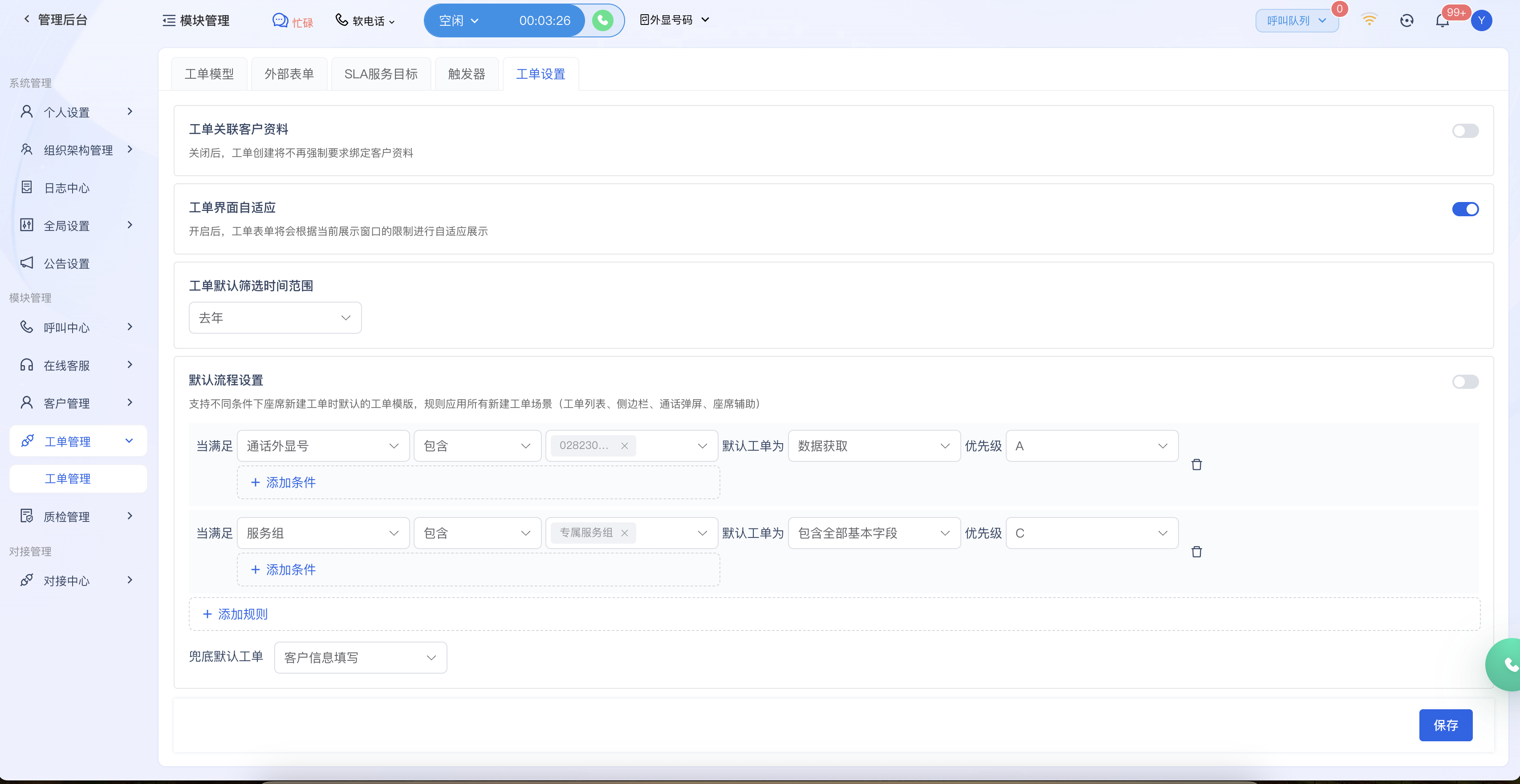 【优化】工单、流程导航支持根据服务组、号码设置创建时的默认选择的工单类型