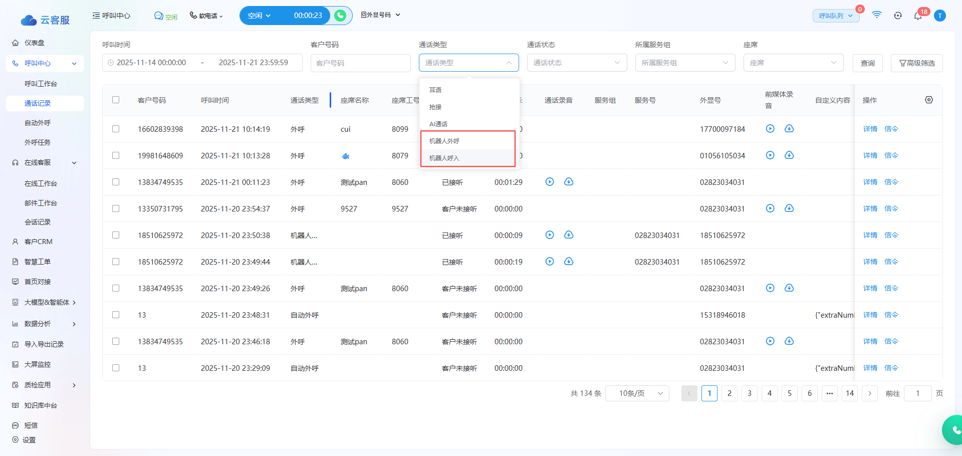 【优化】通话类型新增“机器人呼入”以及“机器人外呼”通话类型