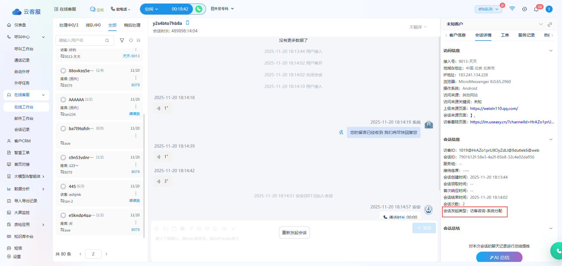 【优化】会话详情中增加消息“主动领取/系统分配”的标记