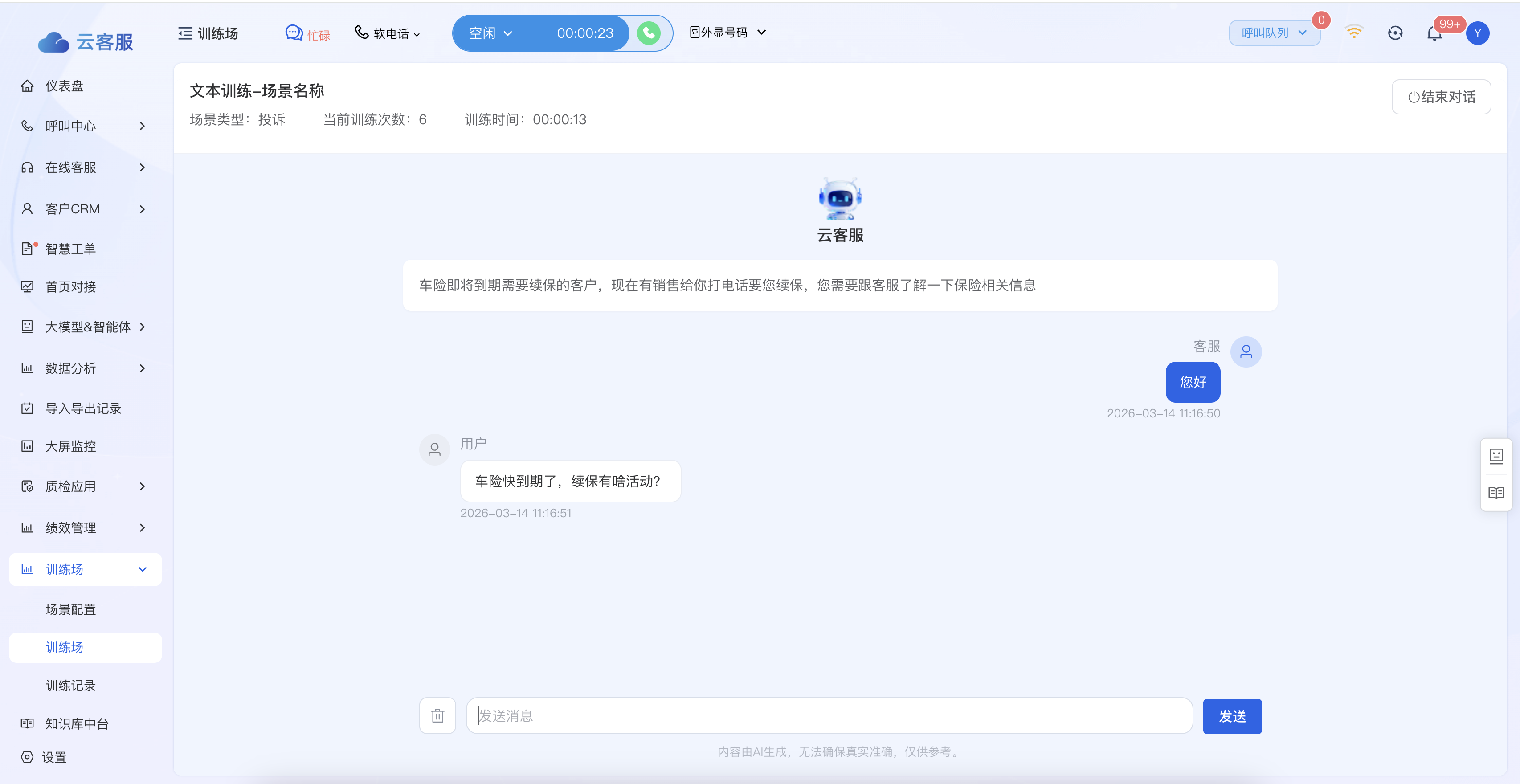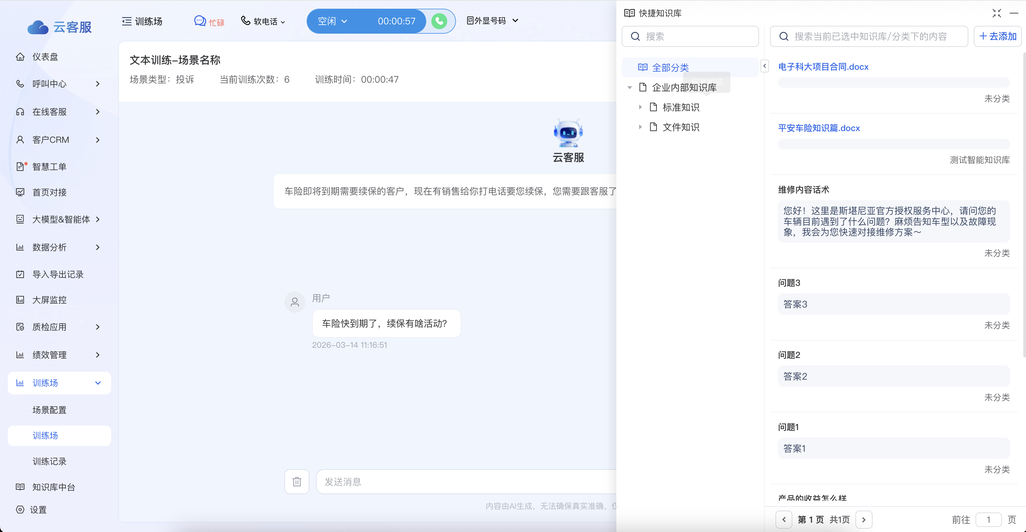 【新增】考培系统新增文本训练场