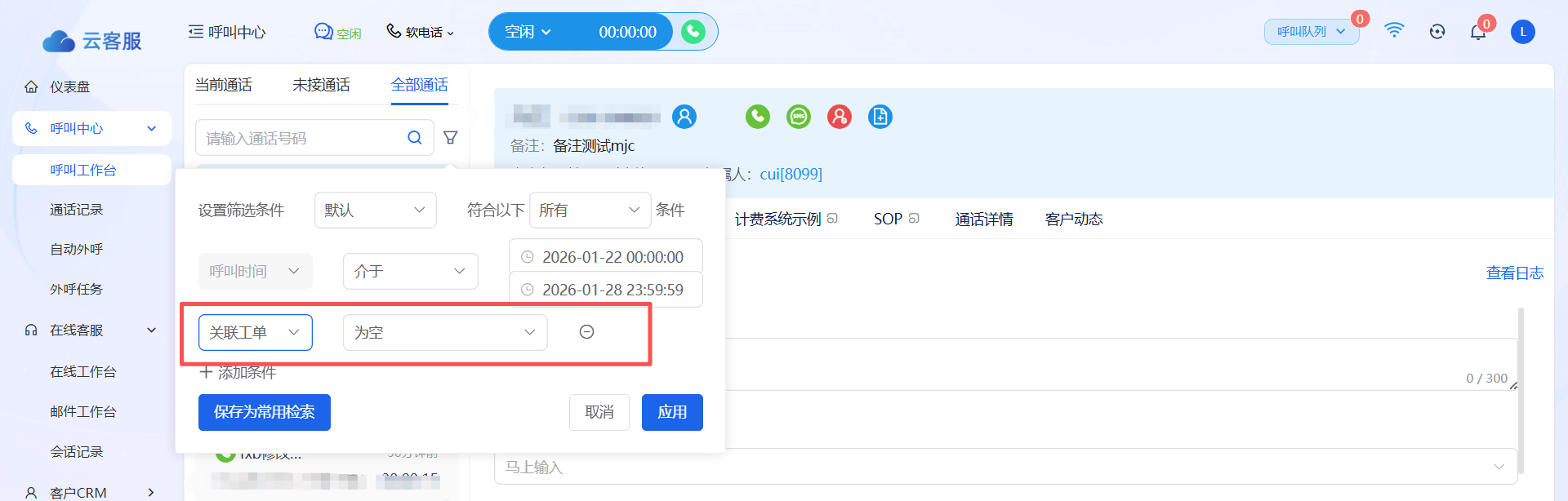 【优化】可通过通话的高级字段筛选列表筛选没有过关联工单的通话