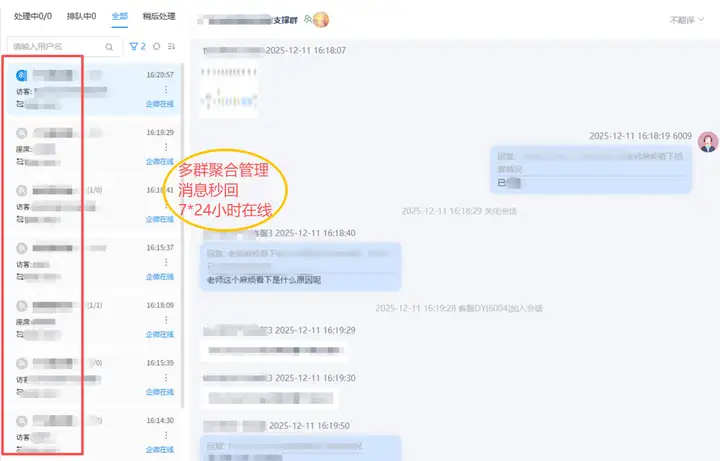 十个、二十个客户群,所有消息聚合在一个工作台列表里。